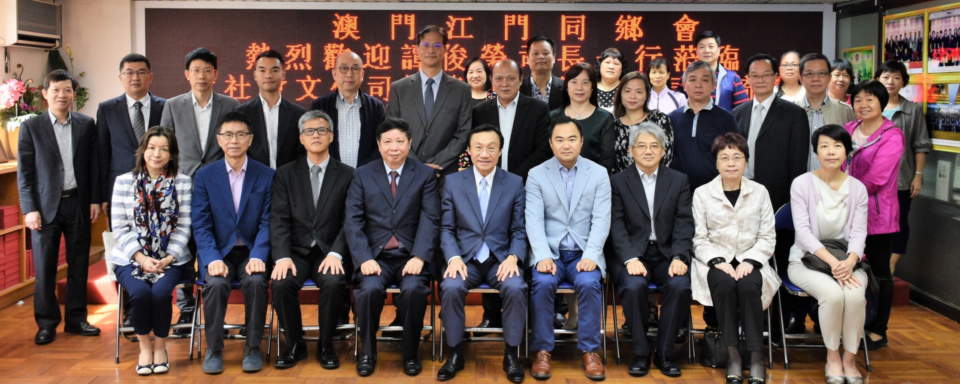 社會文化司司長譚俊榮11月4日率轄下多個局領導及辦公室顧問,到訪澳門江門同鄉會,就社會文化範疇2018年的施政工作聽取意見。會長甄瑞權、副會長麥瑞權、鄭安庭歡迎譚俊榮等官員到訪,同鄉會領導層及骨幹成員數十人出席交流會。