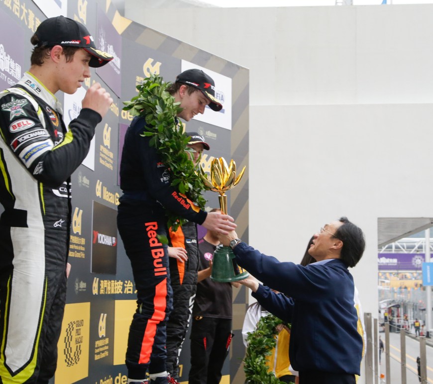 萬眾期待的「澳門格蘭披治三級方程式大賽-國際汽聯三級方程式世界盃」於11月19日上演了激動人心的大戰。賽事領頭車手卡馬拉(Sérgio Sette Câmara)及哈貝斯保(Ferdinand Habsburg)展開連番激戰後在最後一彎撞車,最終Motopark with VEB車隊車手迪圖(Daniel Ticktum)勇摘比賽桂冠。