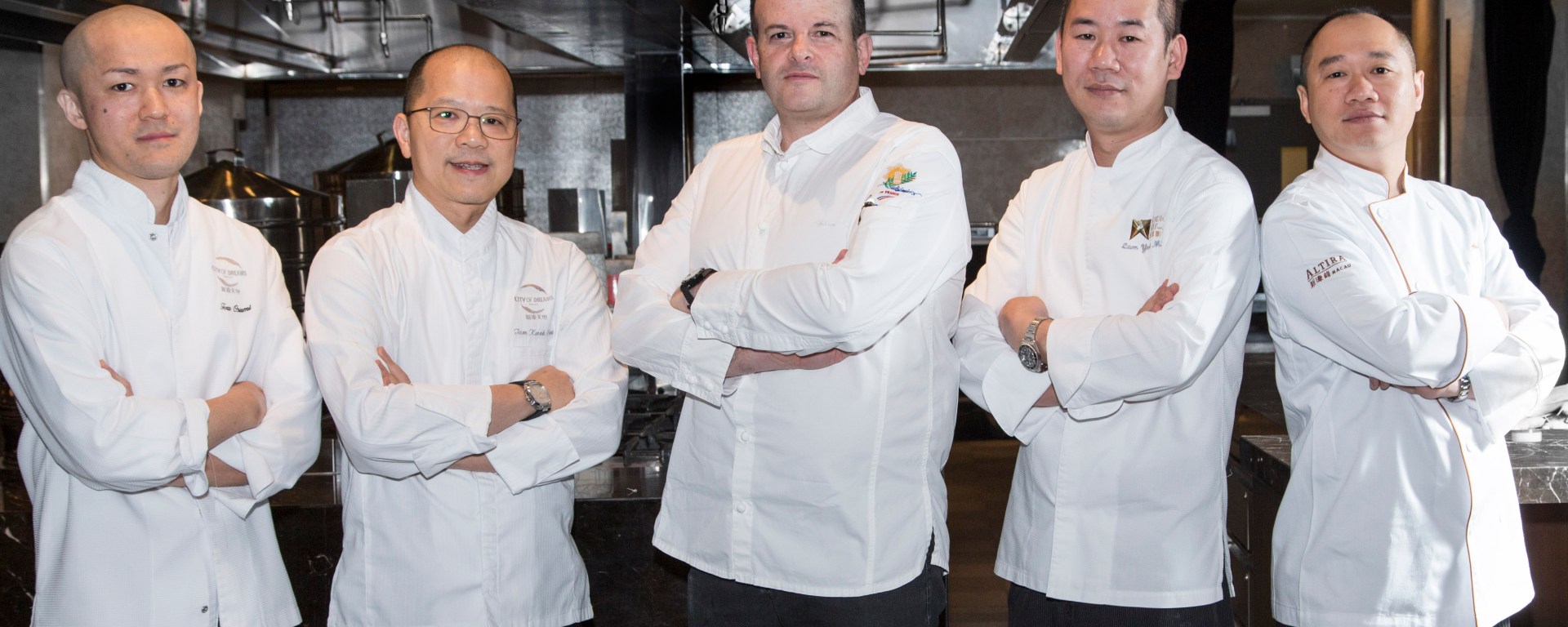 除了米芝蓮嘉許之外,美食專家謝霆鋒率先於新濠天地的「御膳房」、「譽瓏軒」,以及「金坂極上壽司」 品嚐箇中美饌,與名廚們交流美食見解及靈感。