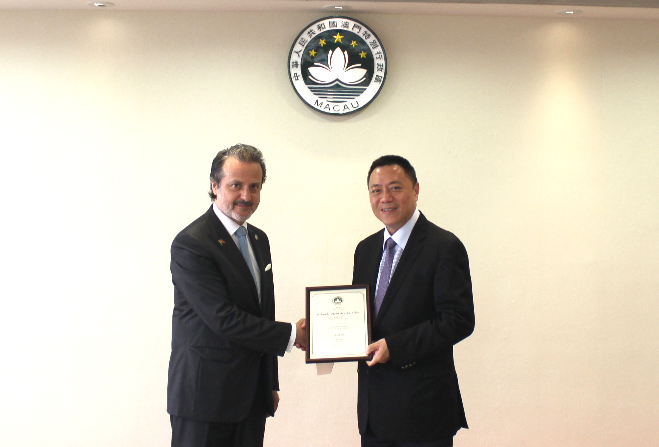 澳門「會議大使」Orlando Monteiro Da Silva接受經濟財政司司長梁維特頒發委任狀