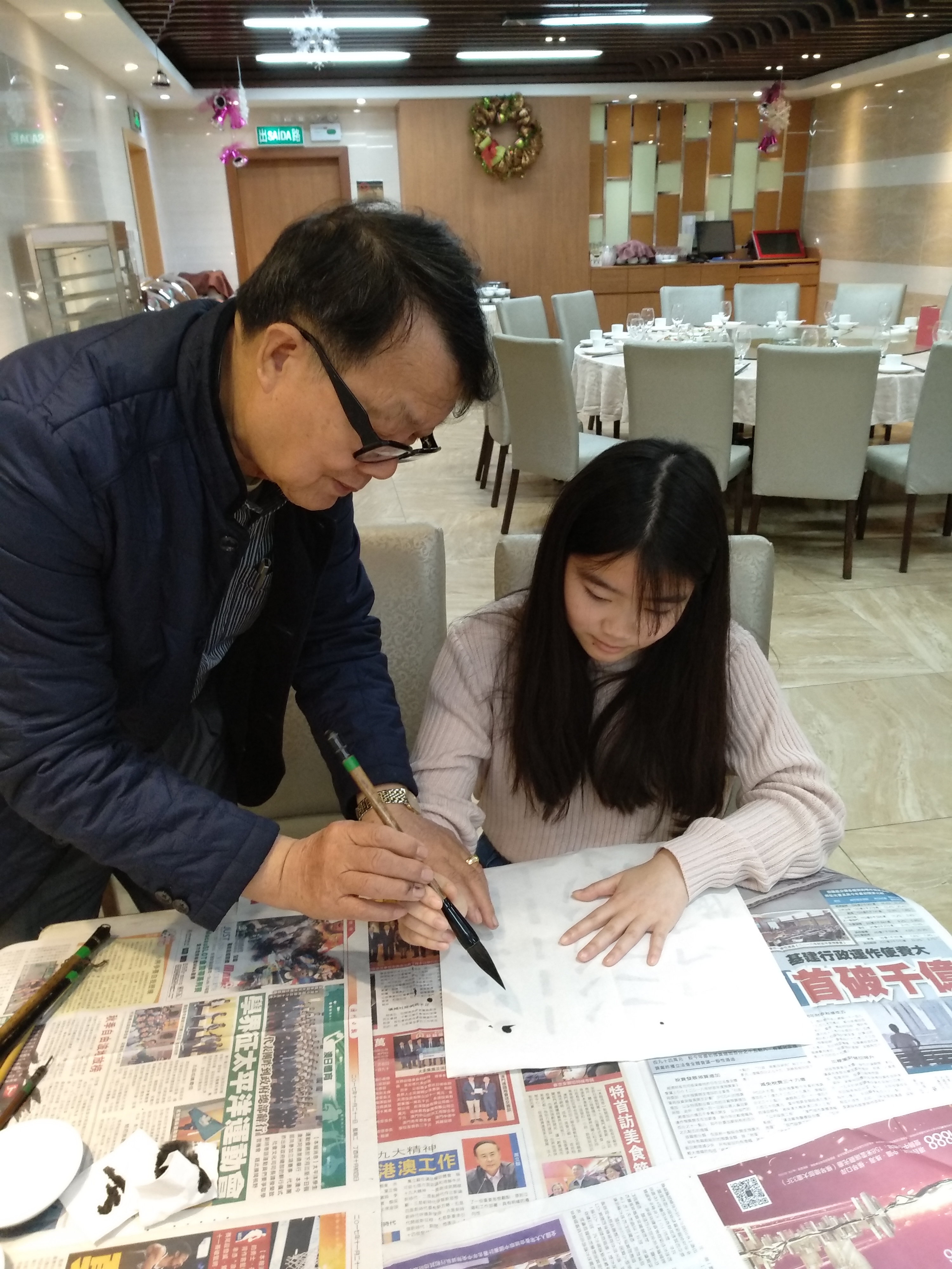 澳門書畫家林德昌歐陽澤榮收美籍華裔少年油畫愛好者孟曉盈為徒