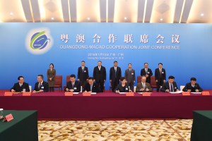 行政長官崔世安和廣東省省長馬興瑞等在粵澳合作聯席會議上見證《澳門特別行政區政府與中山市人民政府關於共同創建國家生物醫藥科技創