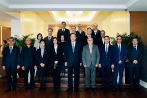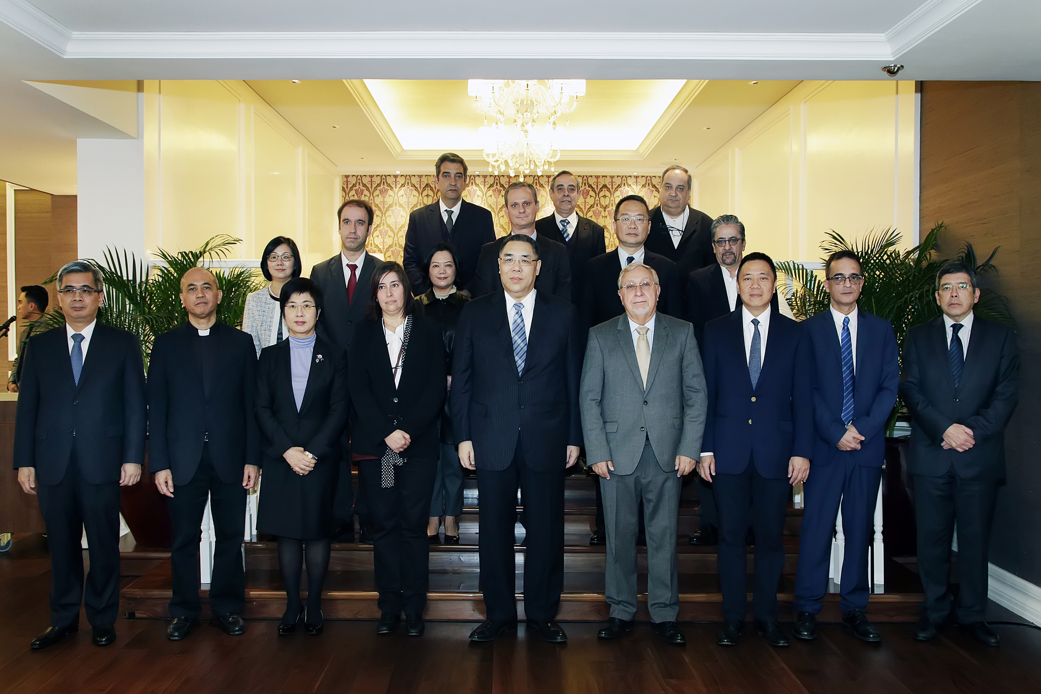 行政長官崔世安宴請本地葡文及英文傳媒負責人,宴會前與衆人合照。
