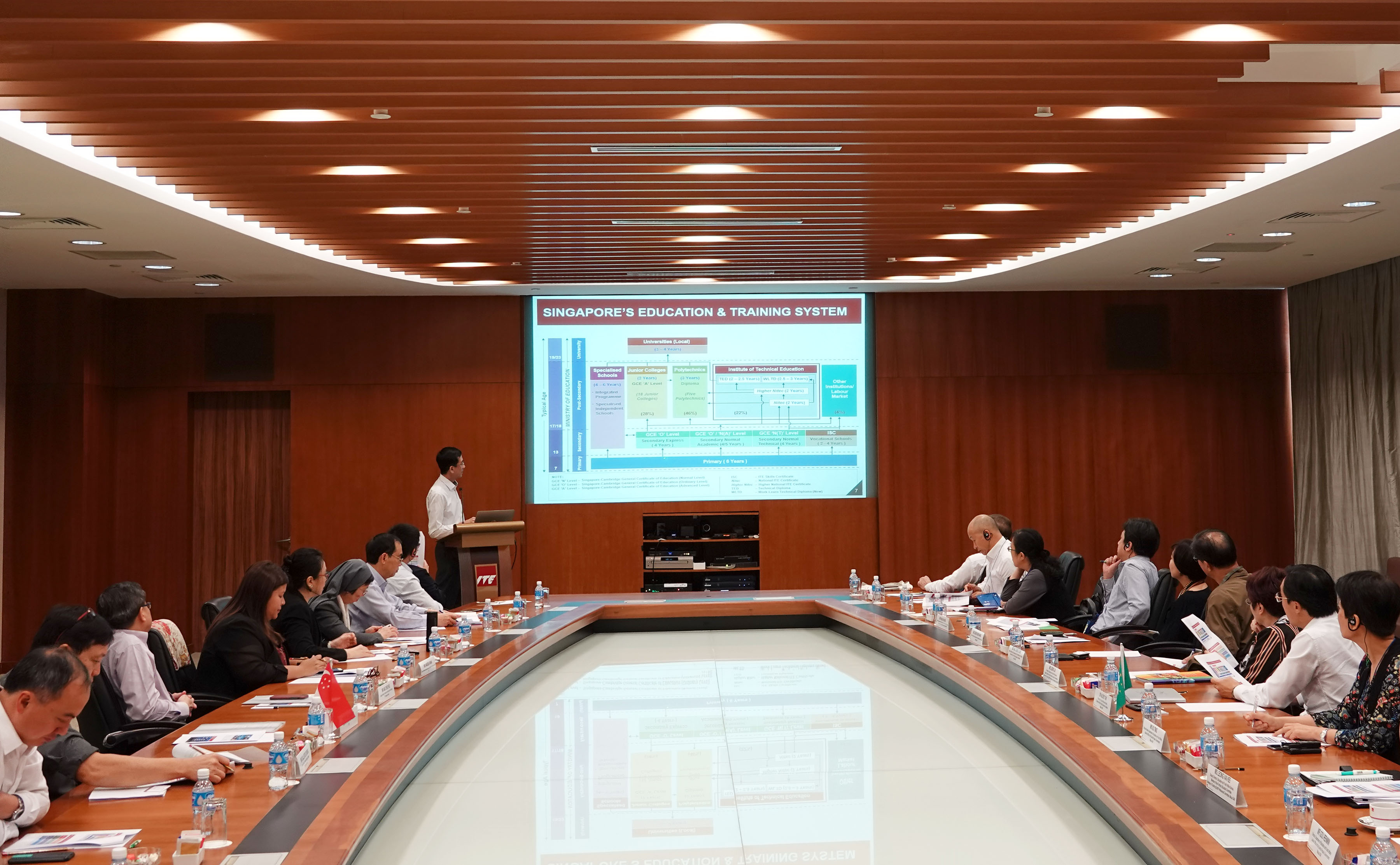 譚俊榮率教育訪問團一行聽取新加坡工藝教育局介紹職業技術教育