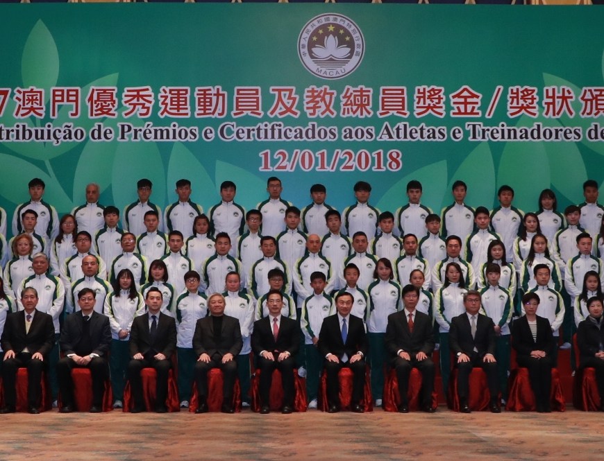 為表彰在2017年度參加體育比賽中獲得優秀成績的運動員及教練員,「2017澳門優秀運動員及教練員獎金/獎狀頒發儀式」於1月12日晚上7時半於漁人碼頭會議展覽中心舉行,社會文化司司長譚俊榮等出席了頒發儀式,並祝賀獲獎的運動員和教練員。