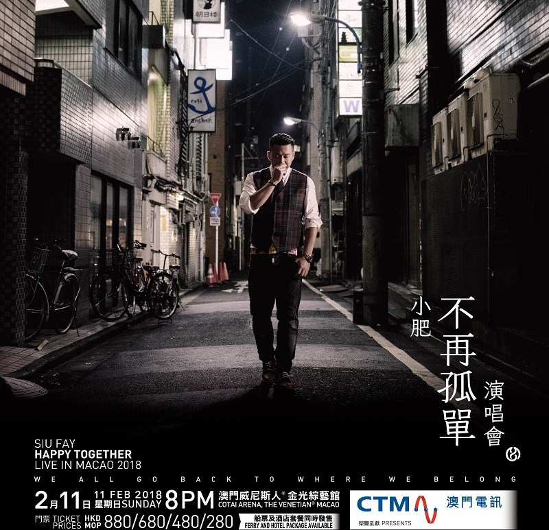 澳門歌手小肥將於2018年2月11日(星期日)以《澳門電訊榮譽呈獻:小肥不再孤單演唱會》重臨澳門威尼斯人的金光綜藝館。門票即日起透過金光票務售票處公開發售。