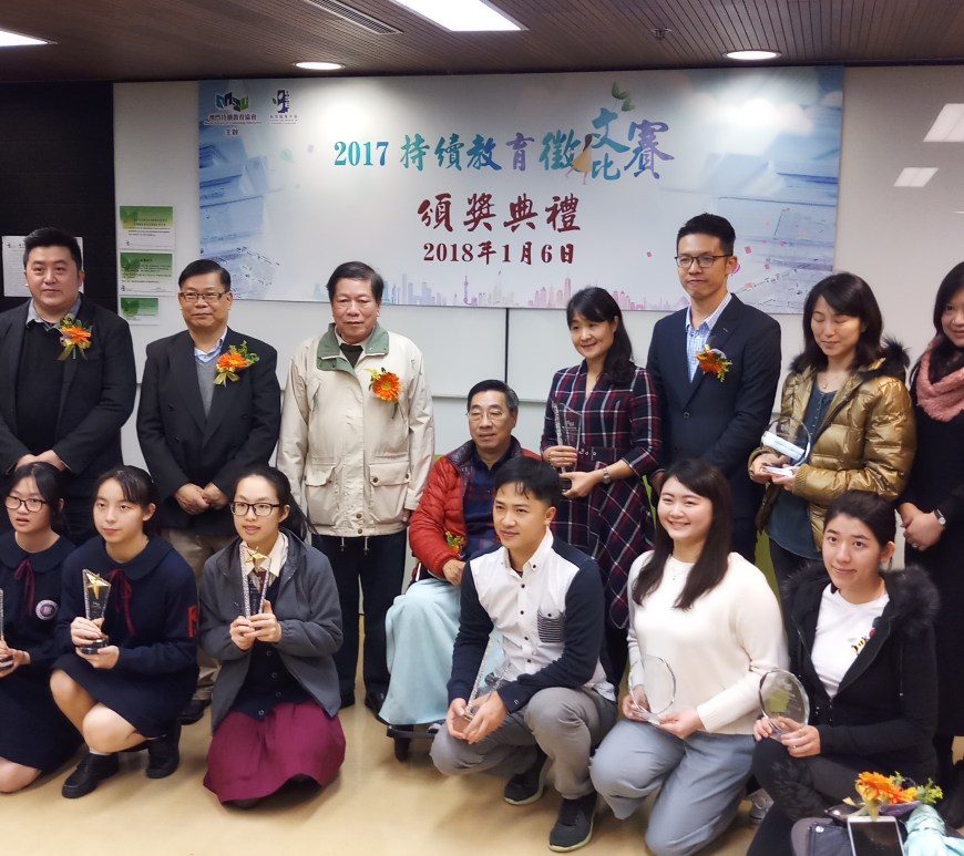 由澳門持續教育協會主辦,澳門教育暨青年局支持的「2017 持續教育徵文比賽 」,一月六日下午三時於澳門教育暨青年局成人教育中心舉行頒獎禮,比賽設有公開組和中學組,公開組主題為「持續教育,何去何從? 」,中學組主題為「持續教育與我」。協會希望藉由文字創作的方式,讓市民加深對持續教育的了解,並抒發對持續教育的意見及建議,從而收集到廣大市民的聲音,有助政府在推行持續進修發展計劃中不斷完善和改進。