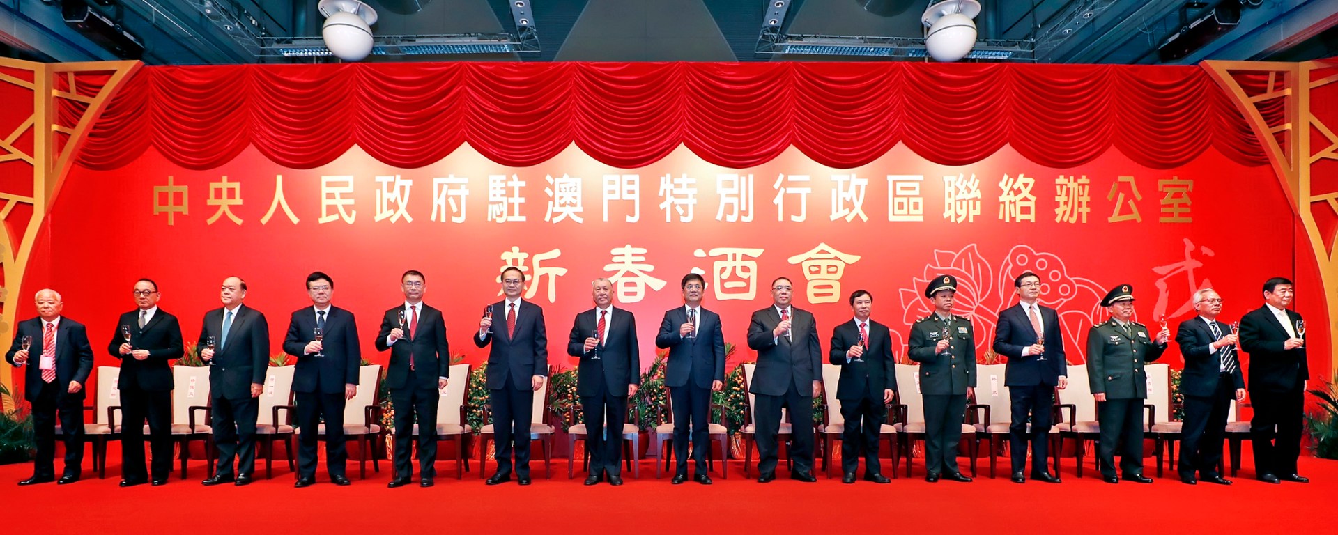 中聯辦於2月8日下午3時半舉行新春酒會,全國政協副主席何厚鏵,行政長官崔世安,中聯辦主任鄭曉松, 外交部駐澳特派員葉大波,解放軍駐澳部隊司令員廖正榮、政委周吳剛,立法會主席賀一誠,終審法院院長岑浩輝,全國政協常委楊俊文、廖澤雲、顏延齡,以及澳門中聯辦副主任陳斯喜、姚堅、孫達、薛曉峰在主禮台就座。中聯辦及中央駐澳機關人員,以及多位特區政府主要官員,立法會議員、行政會委員,澳門社會各界代表等一千四百六十人出席。