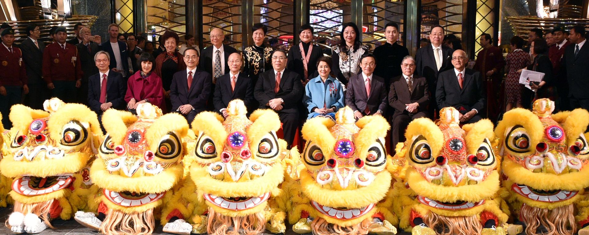 澳門特別行政區行政長官崔世安先生、中華人民共和國外交部駐澳門特別行政區特派員葉大波先生、中央人民政府駐澳門特別行政區聯絡辦公室經濟部副部長朱宏女士、澳門特別行政區政府社會文化司司長譚俊榮先生,與澳博董事局主席蘇樹輝博士、常務董事兼行政總監梁安琪女士、董事兼營運總裁吳志誠先生及眾嘉賓一起送雞迎狗。晚宴上播放了何鴻燊博士的狗年賀辭,為賓客送上何博士的新年問候和祝福。