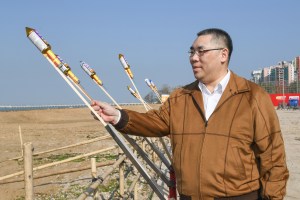 行政長官崔世安到氹仔爆竹燃放區參觀,並燃放火箭