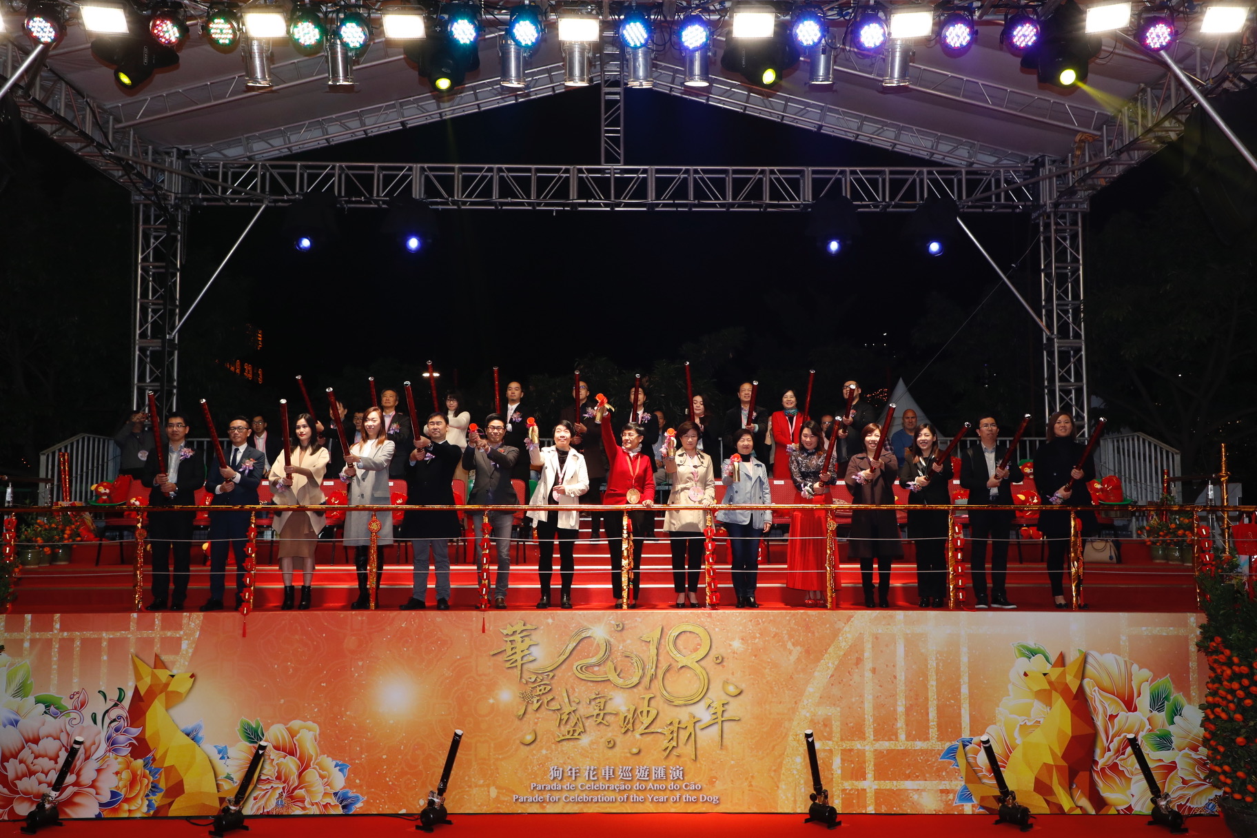 嘉賓在北區主持“華麗盛宴旺財年狗年花車巡遊匯演"起步儀式