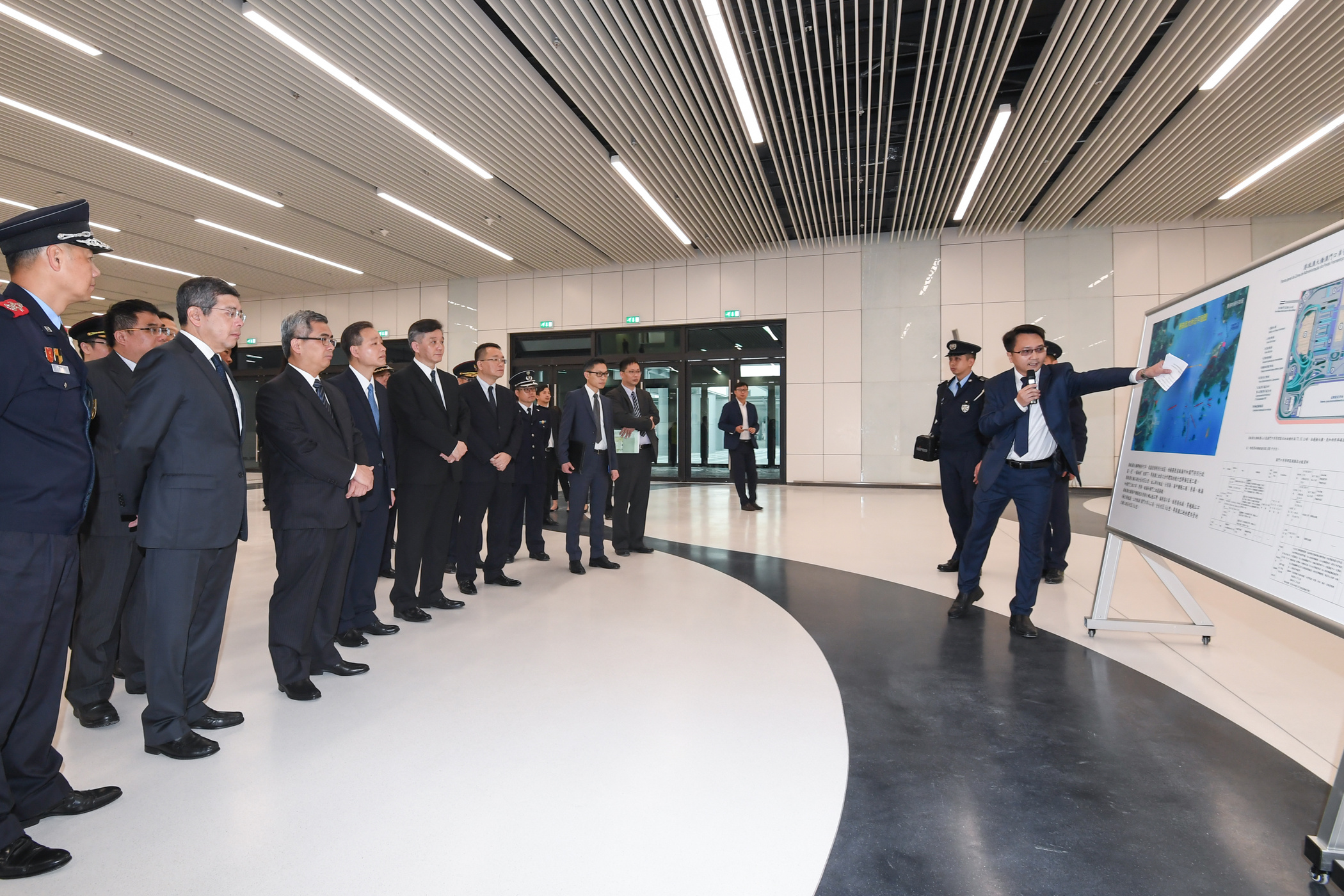 保安司司長黃少澤和運輸工務司司長羅立文等視察港珠澳大橋澳門口岸管理區的設施