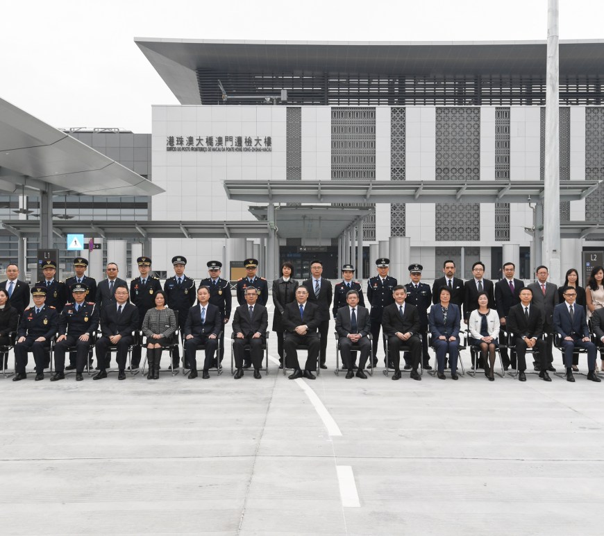行政長官崔世安3月15日上午聯同保安司司長黃少澤、運輸工務司司長羅立文、警察總局局長馬耀權和海關關長黃有力等官員視察了港珠澳大橋珠澳口岸人工島澳門口岸管理區。