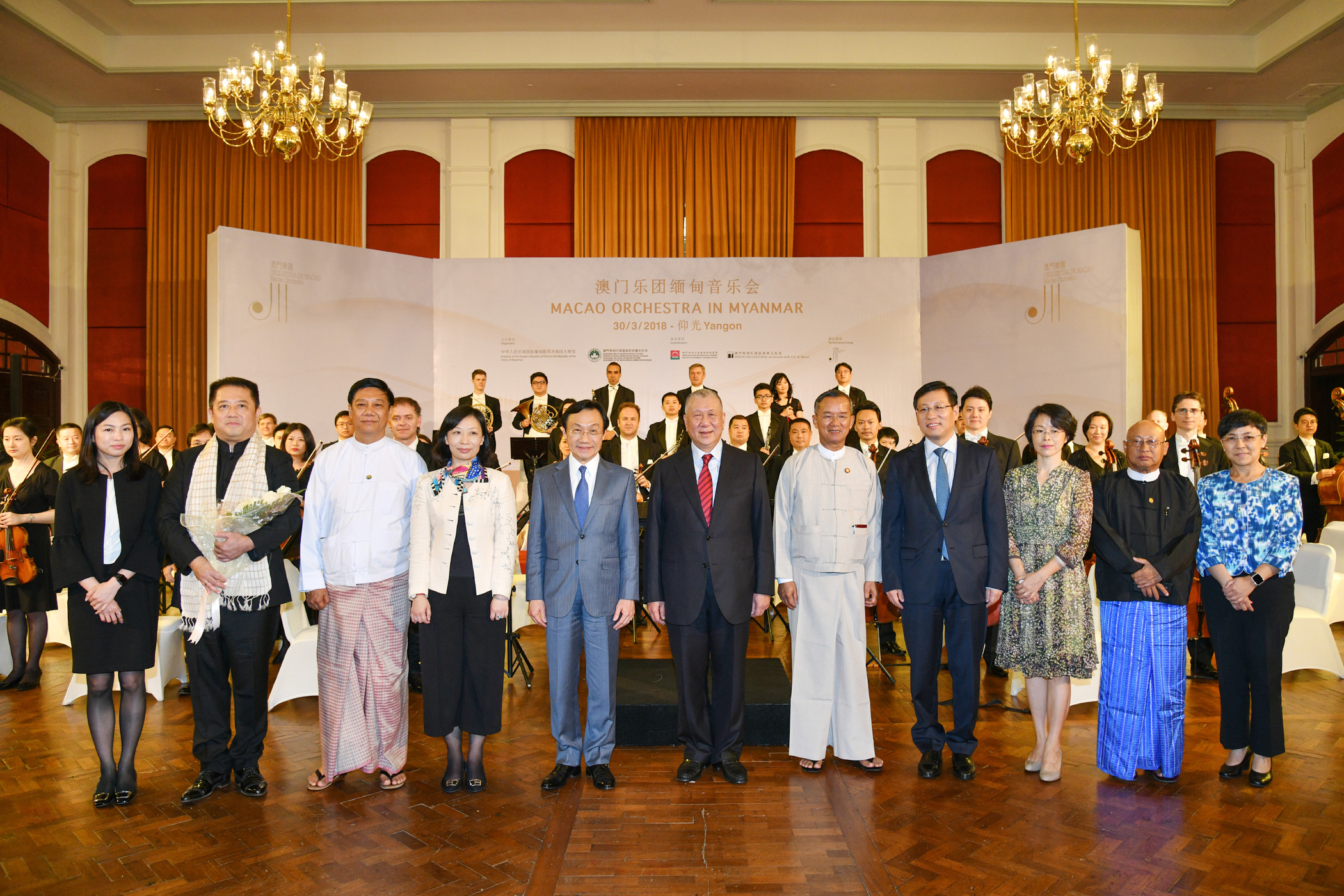 代表團一行於緬甸仰光觀賞澳門樂團的演奏會,並與樂團成員合照。