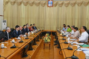 全國政協副主席、前行政長官何厚鏵與緬甸商務部部長丹敏會面。