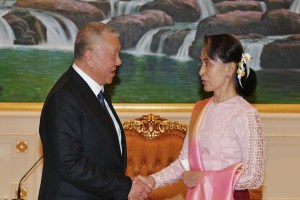全國政協副主席、前行政長官何厚鏵與緬甸國務資政、總統府部部長兼外交部部長昂山素姬禮節性會面。