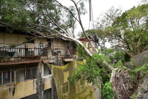 148 展示民署樹隊人員清理塌樹的工作情況,以及遇到的困難