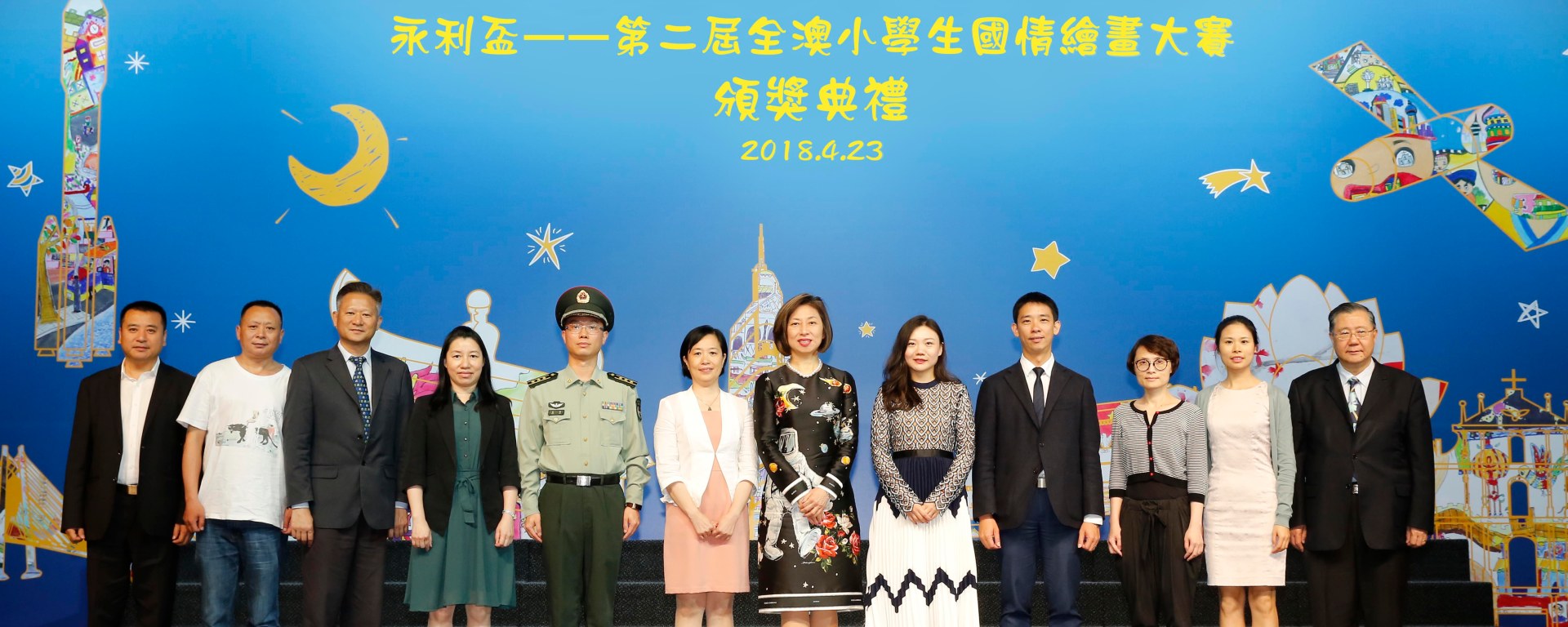 由永利冠名贊助、國情教育(澳門)協會主辦,以「童畫中國夢‧夢想童行」為活動主題的「永利盃–第二屆全澳小學生國情繪畫大賽」頒獎典禮,於2018年4月23日(星期一)下午假永利皇宮舉行。活動旨在加強澳門小學生對國情的認知和了解,培養他們的國家觀念和民族自豪感。來自三十多間學校的500多名師生及社會各界友好於典禮匯聚一堂,共同見證榮耀時刻。