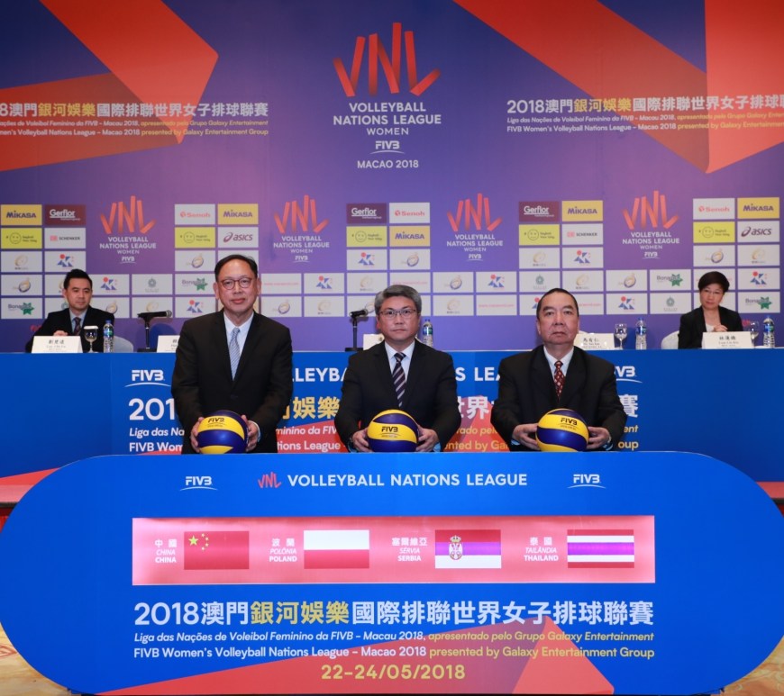 由國際排球聯會授權,澳門特別行政區政府體育局及中國澳門排球總會主辦的「2018澳門銀河娛樂國際排聯世界女子排球聯賽」將於五月二十二日至二十四日一連三天(周二至周四)在澳門綜藝館舉行。四支女排勁旅包括中國、塞爾維亞、泰國及波蘭,將聚首澳門站力爭聯賽最佳排名。主辦單位於三月廿八日舉行新聞發佈會,介紹賽事詳情,銀河娛樂集團將繼續成為本屆賽事的呈獻贊助商。