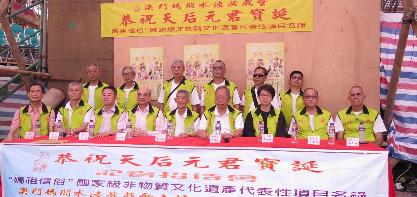 媽閣水陸演戲會在媽閣廟前地戲棚舉行記者會,由永遠榮譽會長簡國龍、會長侯榕根、理事長陳鍵銓、副會長李錦銳、蔡田田、秘書長高光明、監事長蘇七根、榮譽會長歐維仕、副理事長莫兆碩等主持及介紹相關事宜。陳鍵銓表示,澳門媽閣水陸演戲會於每年農歷三月廿一日至廿五日恭祝天后寶誕期間,舉辦賀誕演戲酬神及神功宴等一連串活動,而此一習俗已有近二百年歷史,世代相傳,傳承至今,歷史悠久,愈來愈得到廣大居民、政商界朋友及學者踴躍參與及支持。