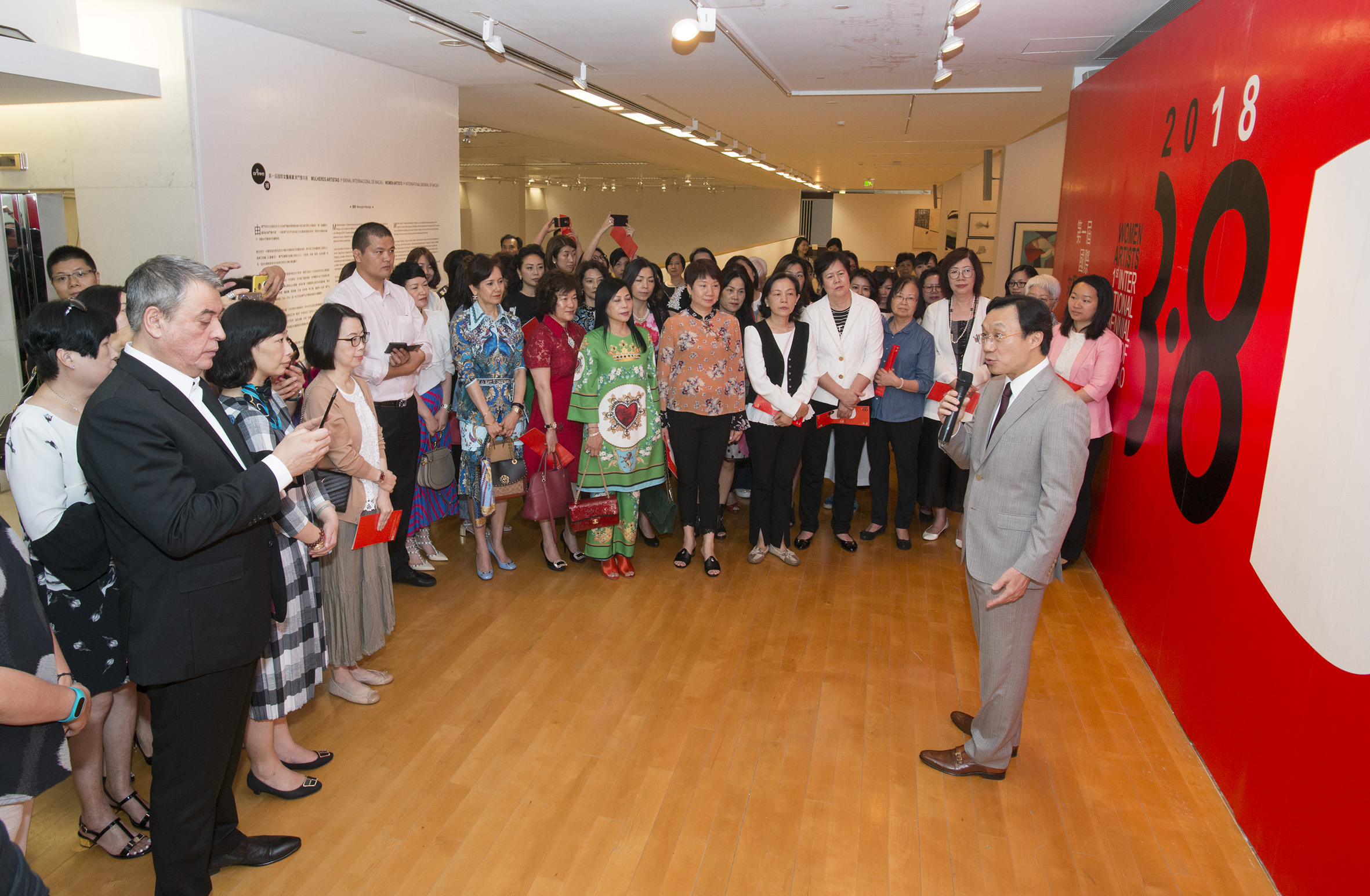 譚俊榮司長、林婉妹理事長與一眾婦女界人士參觀澳門第一屆國際女藝術家雙年展