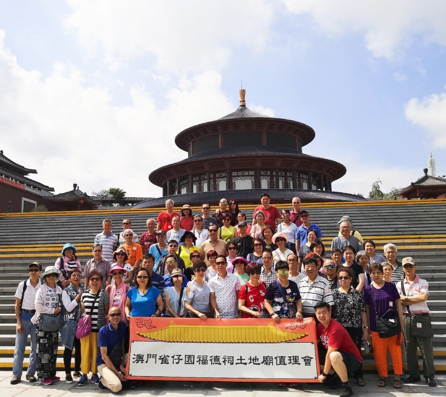 雀仔園福德祠土地廟值理會日前舉辦”雀仔園福德祠歡樂兩天遊”由會長羅盛宗任總領隊,副會長李潔明、關秉權、黃啟輝、副理事長李根、吳基慶、羅銘釗、秘書長楊才源等人任領隊,一行七十人先前往中山,參觀中國大涌木文化博覽城、欣賞珍貴的紅木藝術和原木大財佛和四合院式的中國庭院精緻之美、午餐後前往沙灣古鎮,漫遊小鎮感受古色古香的嶺南文化風情,遊畢後前往廣州,入住香格理拉大飯店,翌日前往東涌水鄉,漫遊東涌綠道,欣賞壯觀的瓜果長廊和特大漂亮的荷花塘。之後到新會拜訪文廣新局,受到局長張北迎和一眾官員熱列歡迎,並與新會青年粵劇團團長張藝仙和副團長李天龍等在嘉悅大酒樓舉行聯歡晚宴,賓主各人皆盡歡,晚上十時回抵澳門、結束兩天歡樂之旅。
