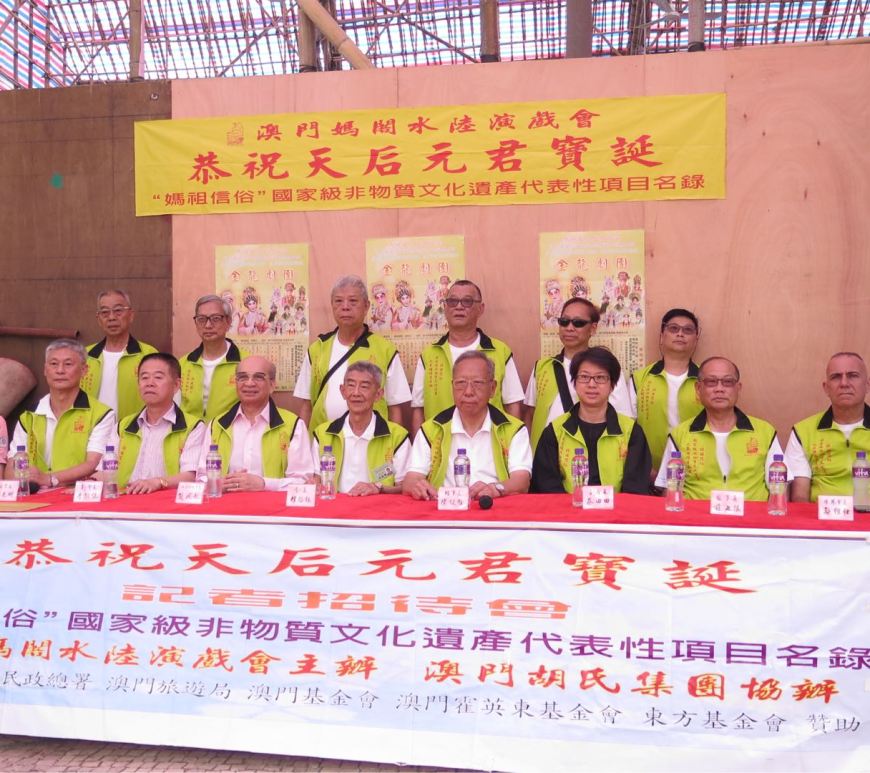 由澳門媽閣水陸演戲會舉辦,胡氏集團協辦,文化局、民政總署、旅遊局、澳門基金會、澳門霍英東基金會、東方基金會贊助的《恭祝天后元君寶誕「澳門媽祖信俗」國家級非物質文化遺產名錄》活動,五月六日起一連五日在媽閣廟前地戲棚盛大公演,今年再度邀請金龍劇團來澳擔綱演出。該會希望通過活動,弘揚「媽祖信俗」工作,祈求神恩庇祐,澳門風調雨順,水陸平安,闔澳居民安居樂業。