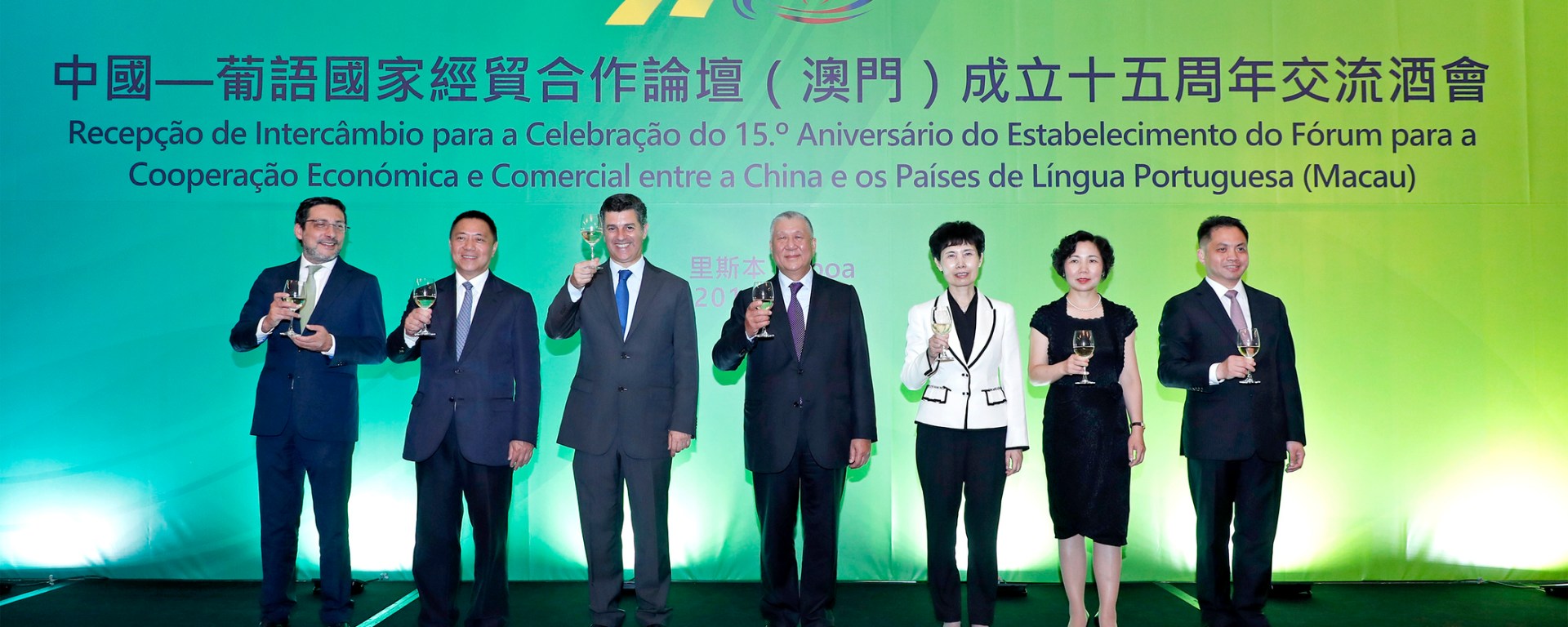 「中國-語國家經貿合作論壇(澳門)成立十五周年」酒會, 當地時間6月21日晚上7時在葡萄牙里斯本舉行,全國政協副主席、原澳門特別行政區行政長官何厚鏵主禮並致詞。他期望各方共同攜手,推動中葡論壇朝着多層次、全方位、向深度和廣度發展,成為「一帶一路」框架下的合作新典範。