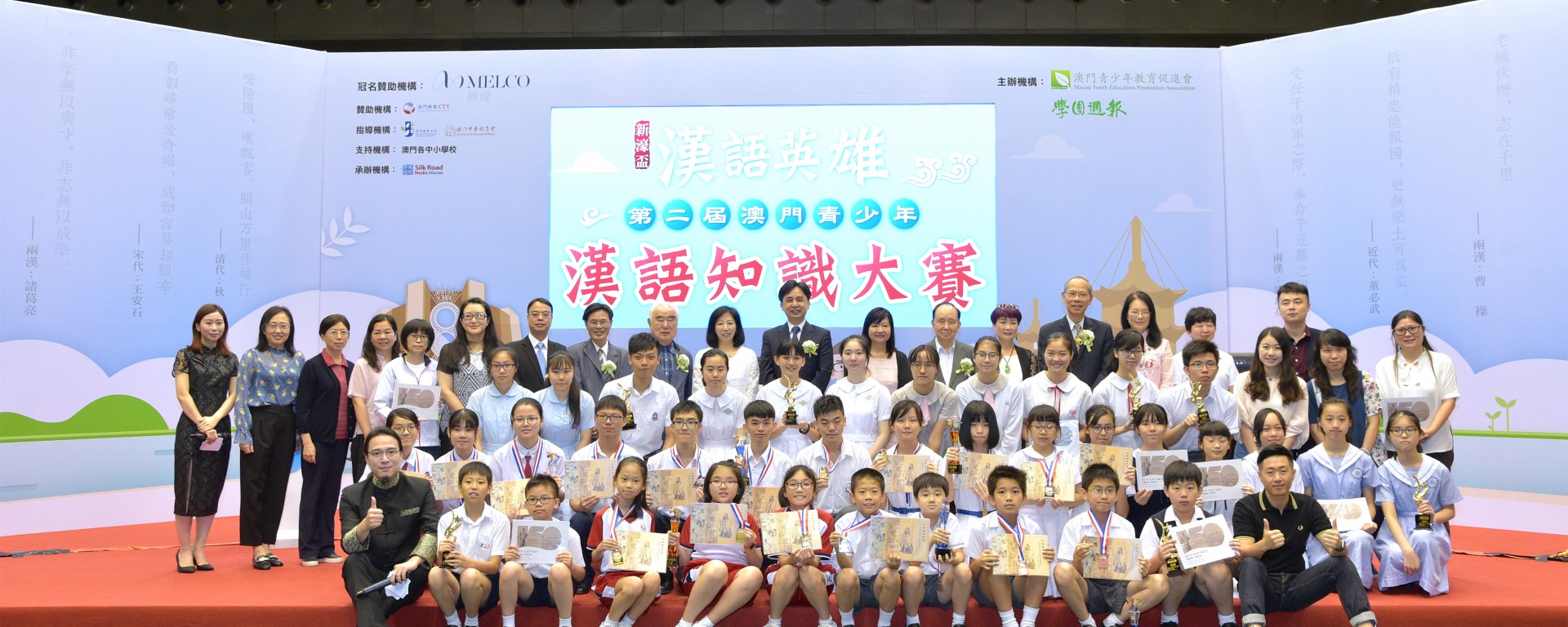 由澳門青少年教育促進會、學園週報主辦,新濠博亞娛樂有限公司冠名贊助的第二屆新濠盃「漢語英雄」澳門青少年漢語知識大賽一連兩日在澳門綜藝館舉行。十四支澳門中小學校代表隊經過2日緊張激烈的角逐,中學組新華學校和小學組濠江中學附屬小學分別奪得第二屆澳門青少年漢語知識大賽的「漢語英雄」稱號。