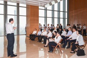 在廣州訪問的行政長官崔世安考察東塔,廣州市市委書記任學鋒介紹該市的經濟和產業發展。2