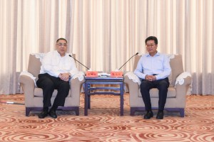 正在珠海的行政長官崔世安與珠海市委書記郭永航會面