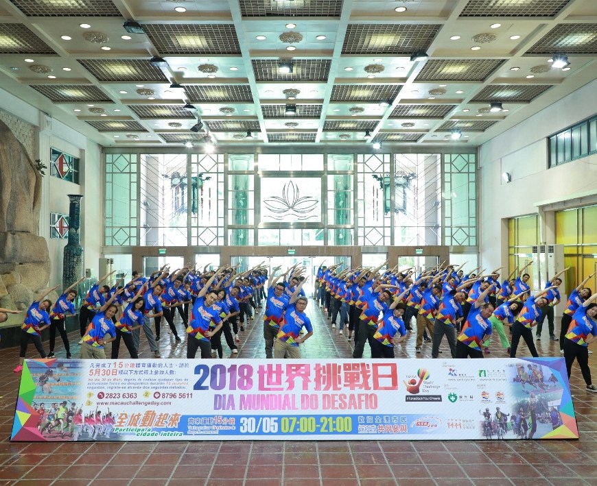 由體育局和民政總署合辦,衛生局協辦的「2018世界挑戰日」活動在各政府部門、機構、商號、社團、學校及各界人士的積極支持下,參與人數達263,353人,佔澳門總人口的40.32%。