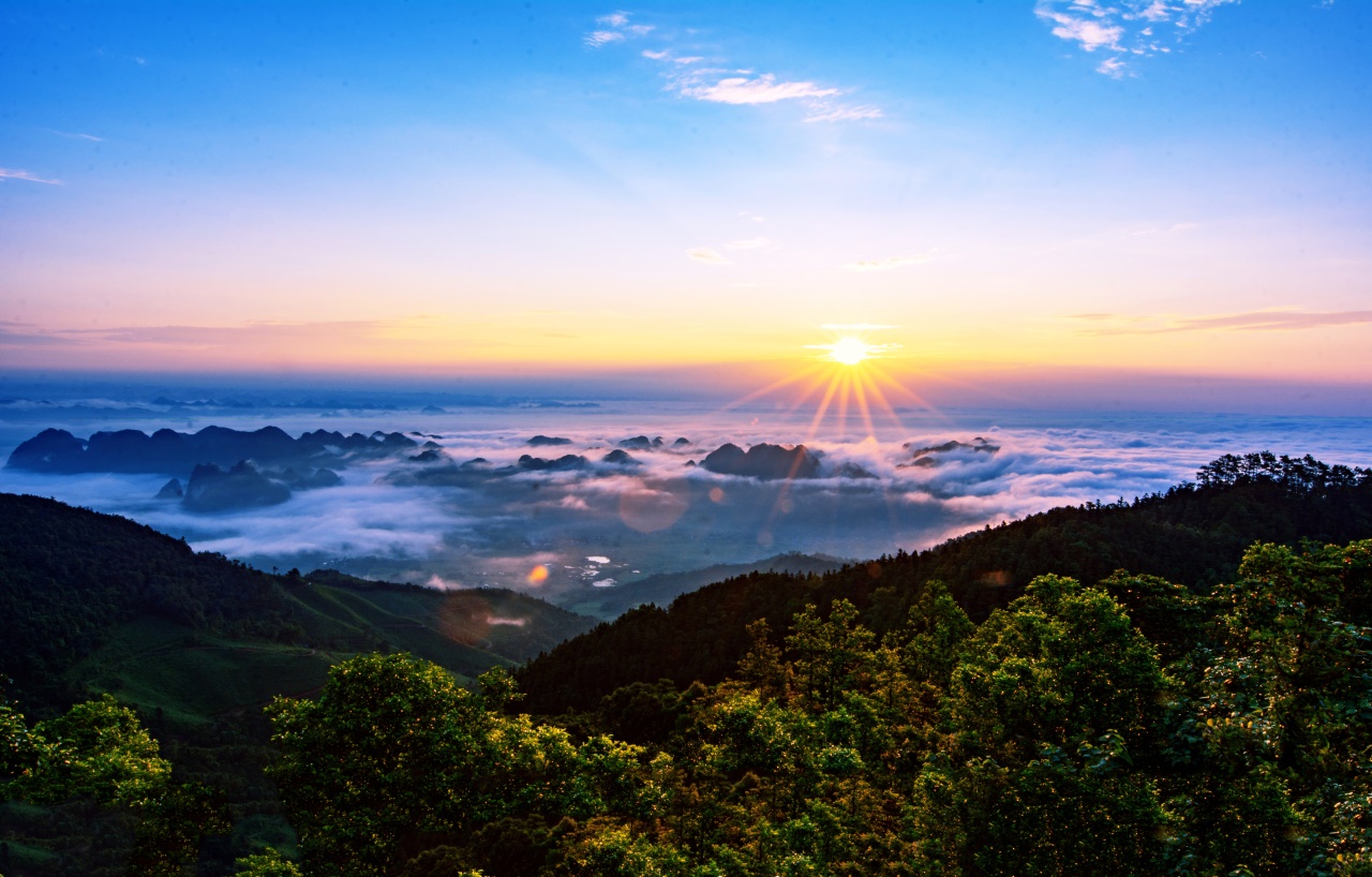 邊關群峰淋霞光_大青山_林光英(廣西)