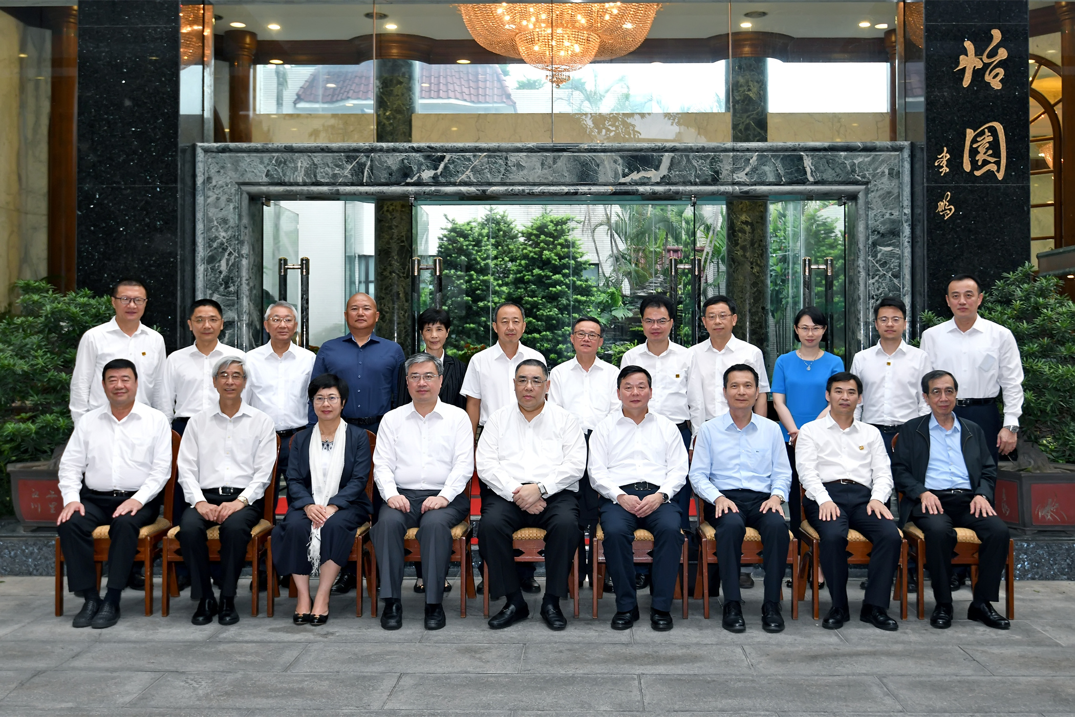 行政長官崔世安、佛山市委書記魯毅等在佛山市迎賓館怡園前合影。