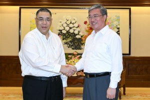 行政長官崔世安與佛山市委書記魯毅親切握手