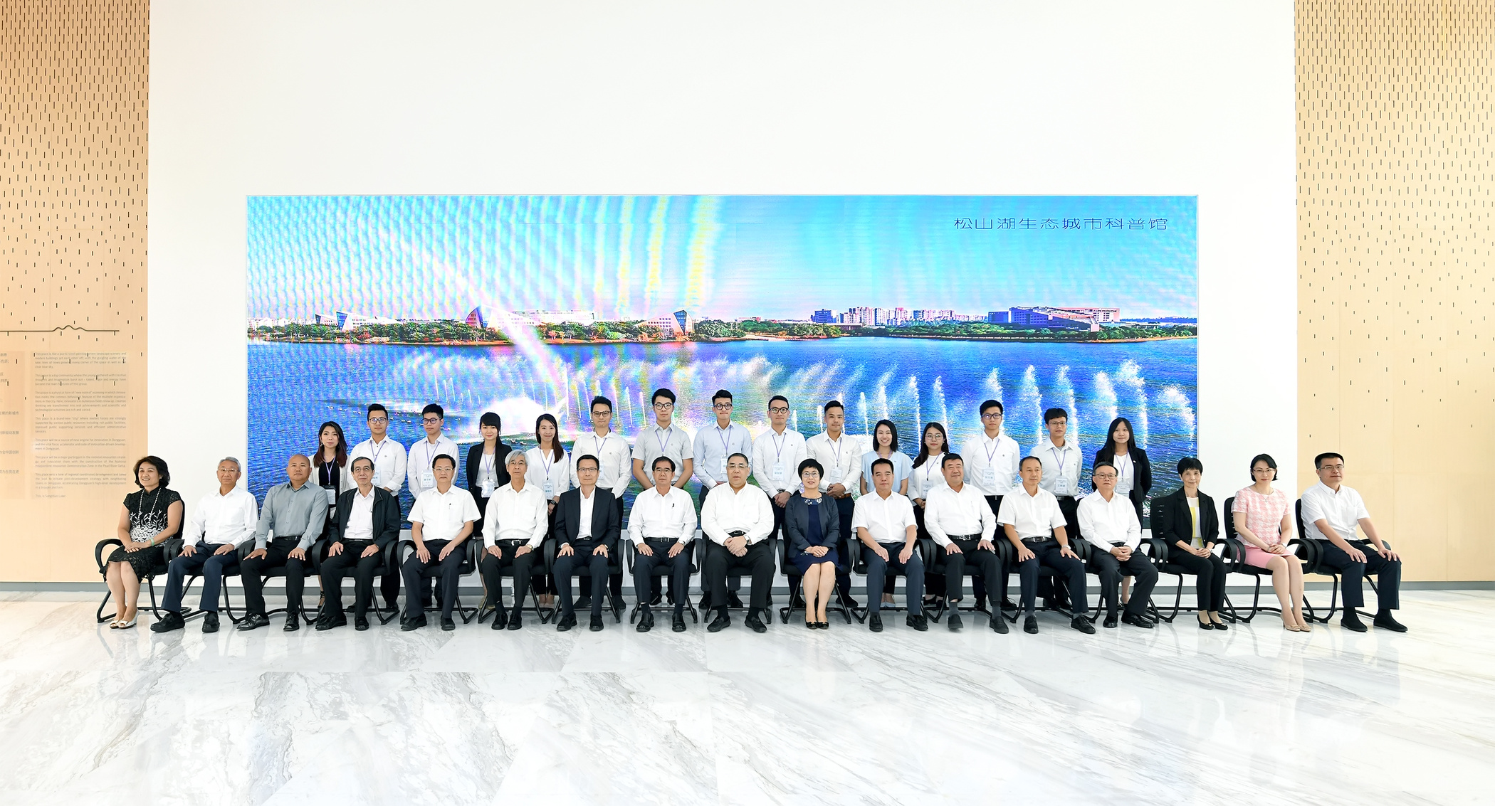 行政長官崔世安在東莞松山湖生態城市科普館與“千人匯”匯員代表合影