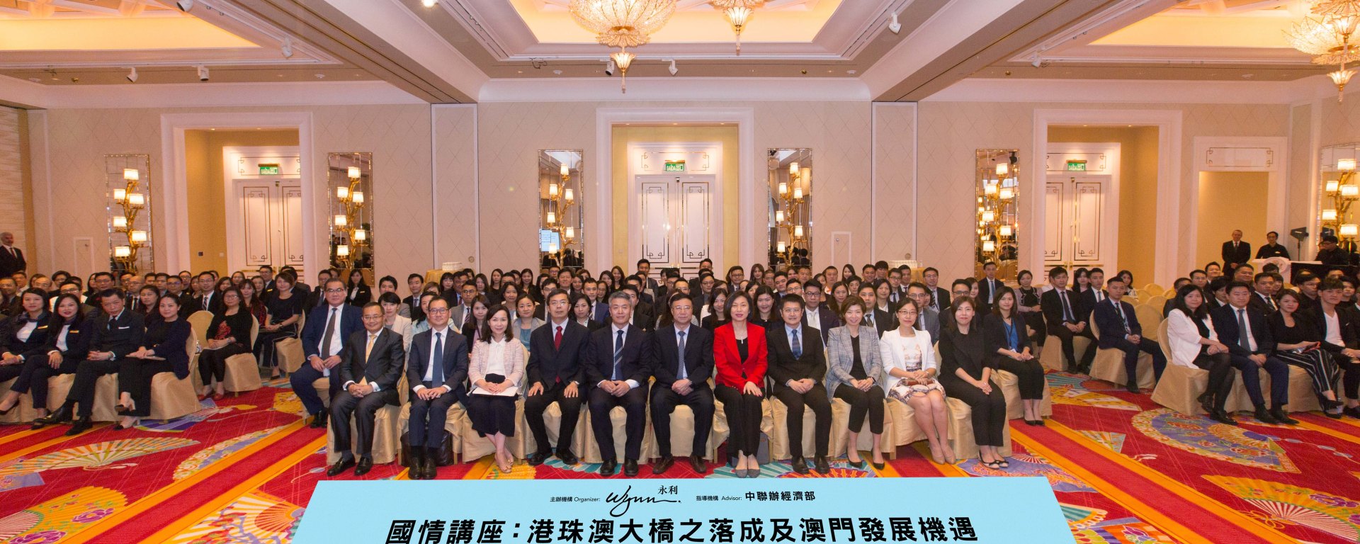 在中央人民政府駐澳門特別行政區聯絡辦公室經濟部的支持下,永利分別於7月17及18日一連兩日假永利澳門及永利皇宮會議廳舉辦「港珠澳大橋之落成及澳門發展機遇」專題講座,並邀得國家商務部研究院區域經濟研究中心主任張建平教授來澳擔任主講嘉賓,與逾460名管理層成員分享相關議題及解答問題。