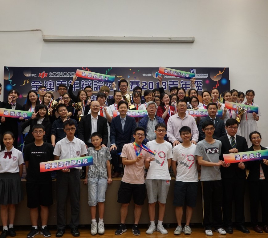 澳門教育暨青年局中學暨技術職業教育處代處長梁怡安先生、澳門「一帶一路」研究中心主任周平先生、中國東盟(澳門)仲裁協會理事會主席賴建國先生、澳門辯論學會理事長胡國年先生、中華名辯盟副理事長劉京京先生、全國人大代表、澳門立法會議員、中華青年進步協會創會會長施家倫先生及全澳青年辯論公開賽2018青年盃統籌劉可茵女士出席決賽暨頒獎禮。