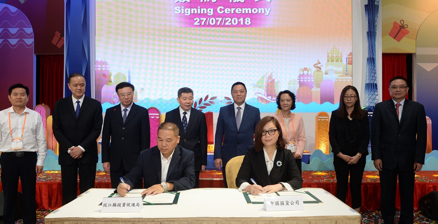 澳門貿易投資促進局於「2018粵澳名優商品」」開幕儀式上,簽署了5份合作備忘錄及合作協議。有粵港澳大灣區簽約嘉賓期望能藉此更好發揮澳門的中葡平台作用,並結合電商共同「走出去」。