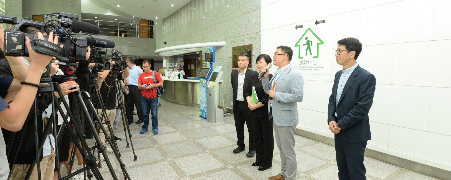 他也向傳媒介紹設於何東中葡小學的避險中心總協調臨時辦公室,當避險中心運作時,避險中心工作小組及設於北安的民防行動中心可透過避險中心資訊系統,掌握全澳避險中心和集合點/緊急疏散停留點的實時數據,如入住情況、物資供應、輪值人員安排等,有助統籌及協調各間避險中心的運作。