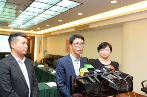 教育暨青年局代局長梁慧琪、社會工作局副局長韓衛、體育局體育設備管理處處長莫子恆,向傳媒介紹避險中心及其總協調臨時辦公室的設施