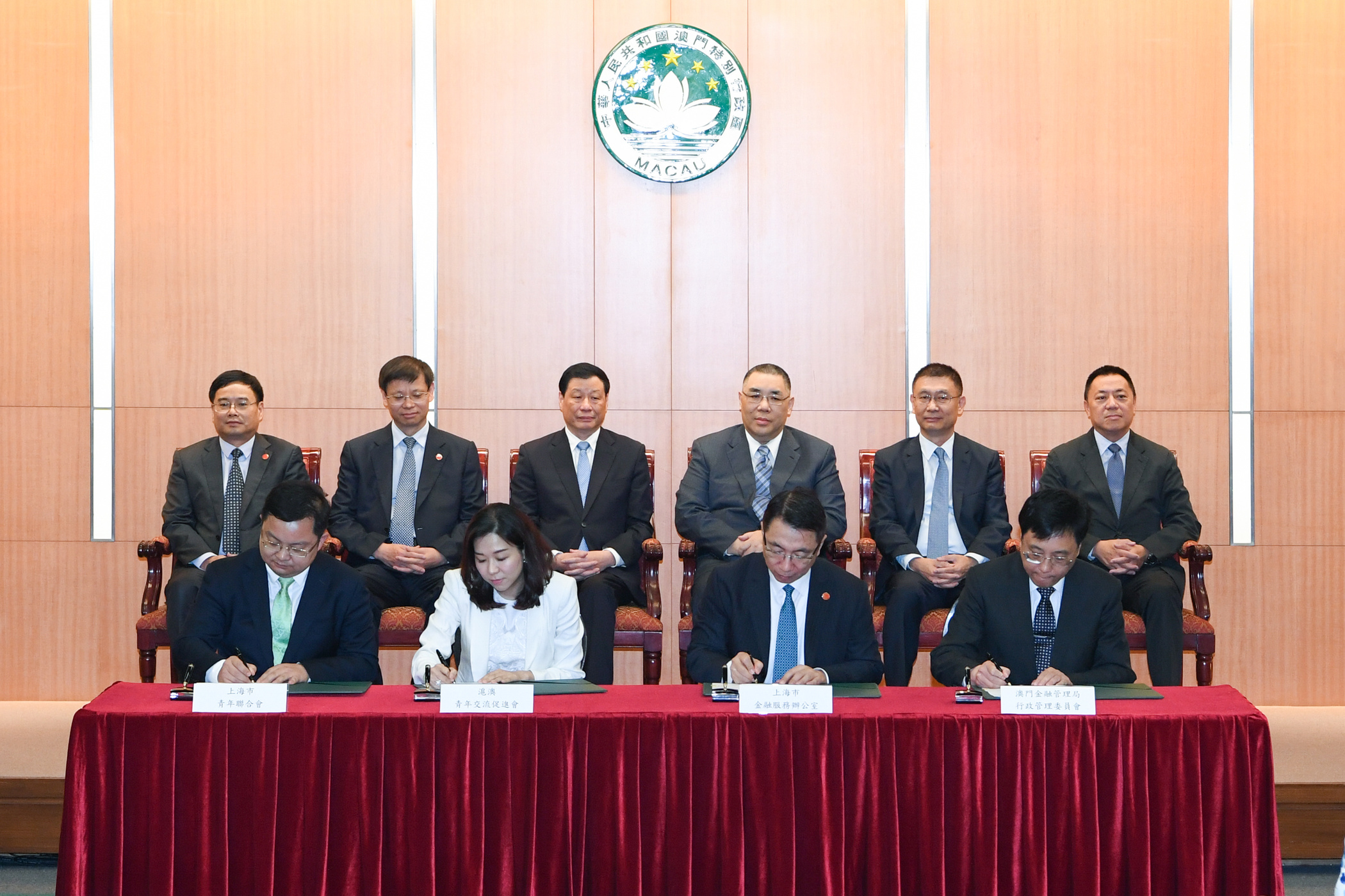 行政長官崔世安、上海市市長應勇等見證《上海市金融辦與澳門金融管理局關於深化滬澳金融合作的備忘錄》和《上海市青年聯合會與滬澳青