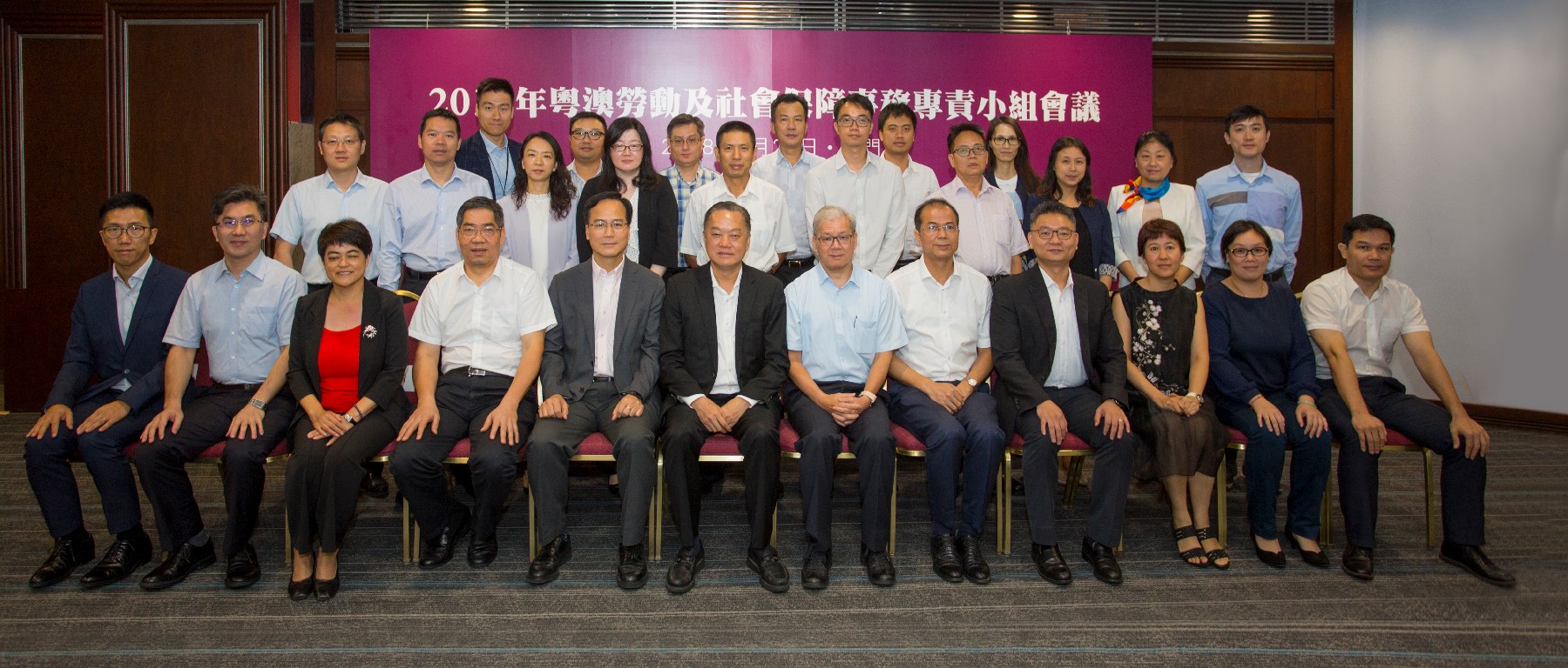 粵澳雙方與會者合共三十七人,粵方與會代表包括有廣東省人力資源和社會保障廳廳長陳奕威、廣東省社會保險基金管理局副局長陳少霖、珠海市人力資源和社會保障局局長練偉光和廣東省港澳辦社會處處長何勉之等十三人;澳方與會代表包括有勞工事務局局長黃志雄、社會保障基金主席容光耀、經濟局產業發展廳廳長邱潤華等二十四人。