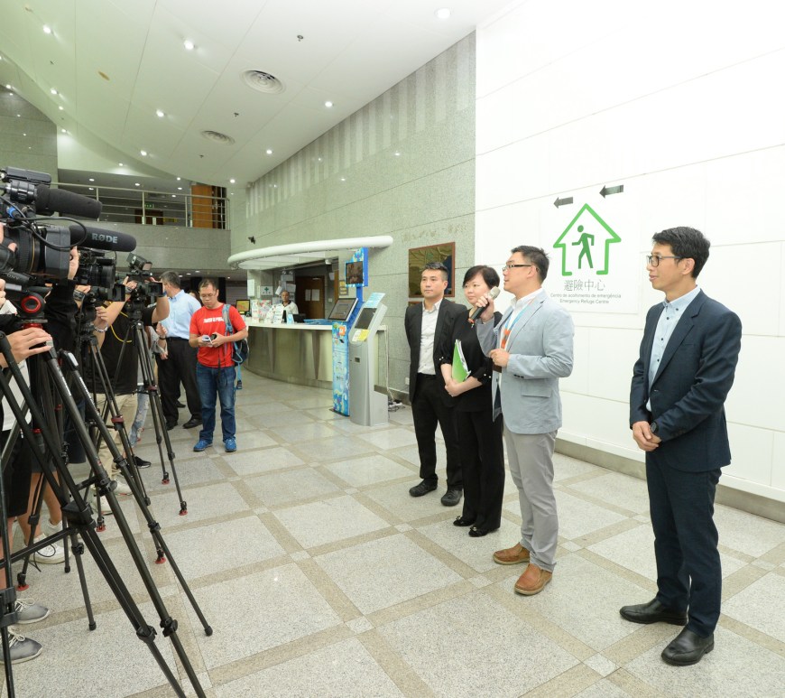 為應對颱風期間風暴潮可能對低窪地區居民造成的水浸威脅,特區政府積極在全澳籌設16個避險中心及4個集合點/緊急疏散停留點。避險中心工作小組於8月16日向傳媒介紹設於塔石體育館的避險中心,以便讓公眾了解避險中心的設施及運作。