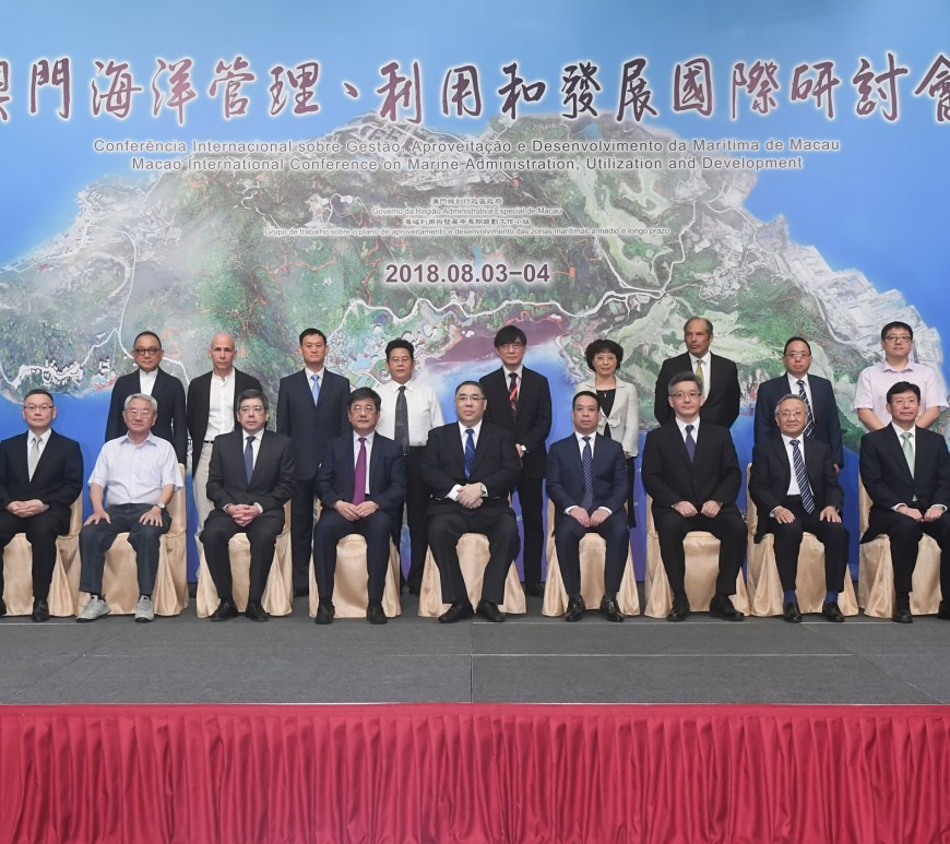 由澳門特別行政區政府「海域利用與發展中長期規劃工作小組」主辦的「澳門海洋管理、利用與發展國際研討會」於8月3至4日假澳門旅遊塔舉行。澳門特別行政區行政長官崔世安、中央人民政府駐澳門特別行政區聯絡辦公室主任鄭曉松、國務院港澳事務辦公室副主任黃柳權、自然資源部海洋戰略規劃與經濟工作小組負責人張占海、國家發展改革委員會地區經濟司副巡視員黃微波出席研討會開幕式並致辭。