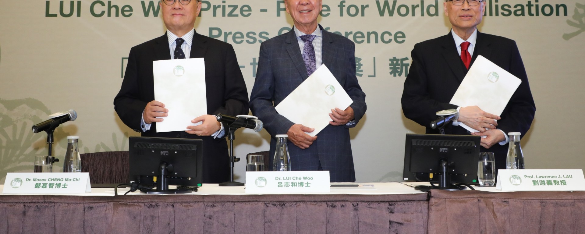 「呂志和獎」創辦人及董事會主席暨獎項理事會主席呂志和博士主持新聞發佈會,並聯同呂志和獎有限公司董事會成員鄭慕智博士以及「呂志和獎」獎項推薦委員會主席劉遵義教授一同出席。