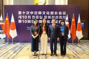 澳門代表團與文化和旅遊部港澳處處長白冰合影(左起:穆欣欣、白冰、譚俊榮、林韻妮)