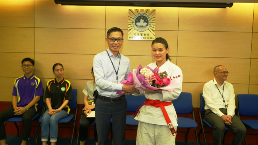 司警局局長向亞運銀牌得主蘇瑞林表示祝賀