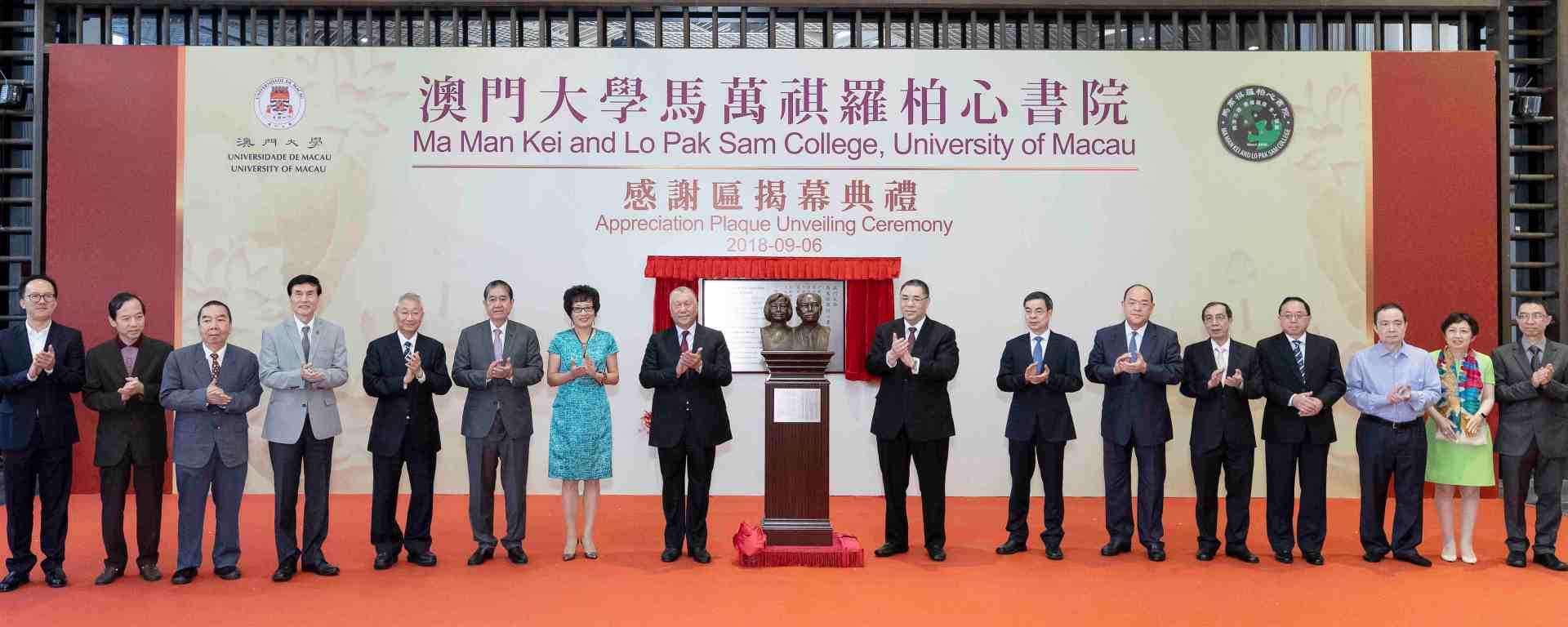 揭幕由澳門特區行政長官兼澳大校監崔世安、全國政協副主席何厚鏵、中央人民政府駐澳門聯絡辦公室副主任張榮順、外交部駐澳門特區特派員公署署理特派員王冬、澳門立法會主席賀一誠、馬有恆、馬有禮、馬有為、馬有仁、馬有慧、馬有信、馬有友、馬志剛,以及澳門大學校董會主席林金城、代校長倪明選、馬萬祺羅柏心書院創院院長許德寶主禮。