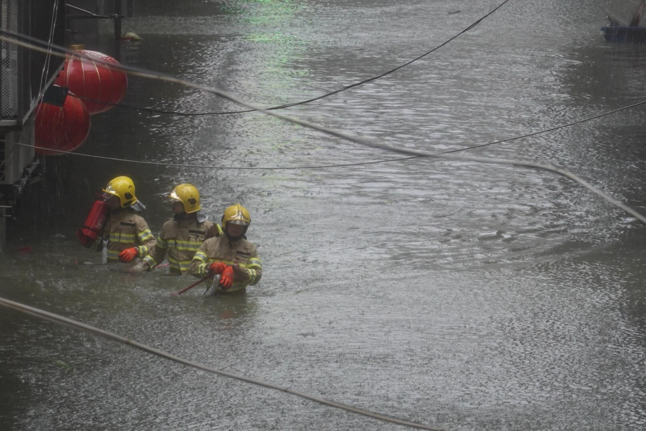 保安部隊及部門人員在全澳各區開展救援工作,並持續協助區內居民進行撤離。
